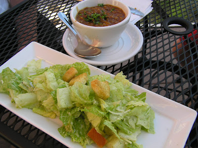 After the appetizer our salad and soup (you get a choice of one with your main dish) arrived. The Wife went for the soup which they called Mississippi Mud. I got the caesar salad.