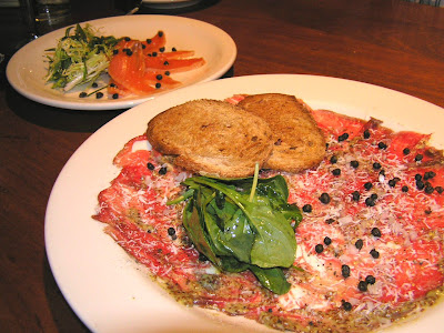 On to the food! We ordered a few appetizers. The Clams and Chorizo ($15), the Cured King Salmon ($7) and the Beef Carpaccio ($12).